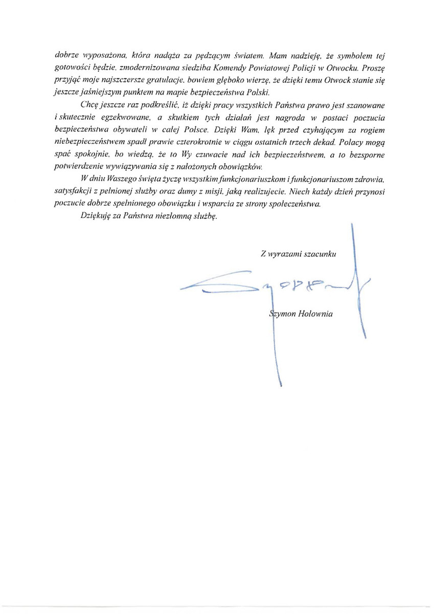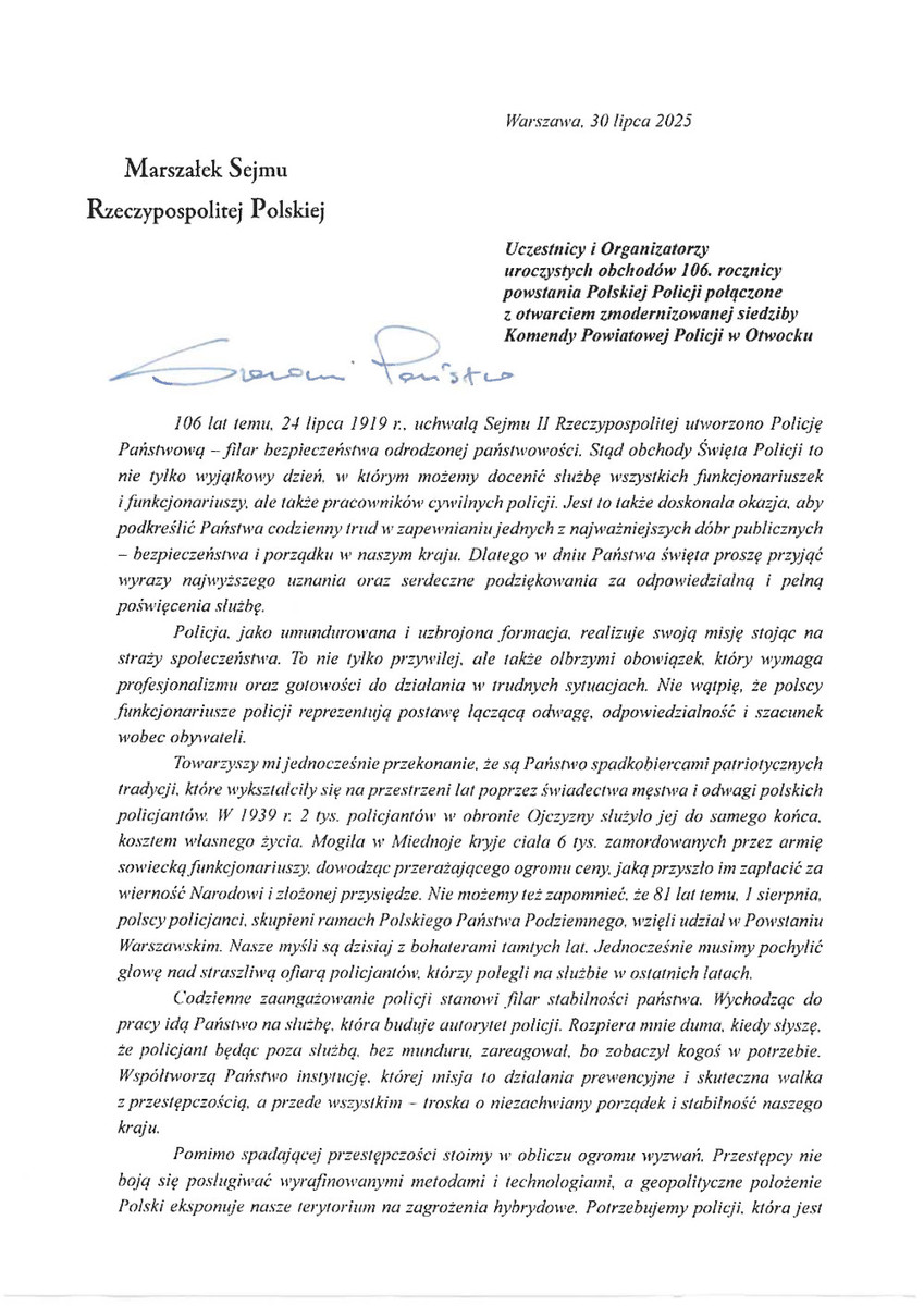 Życzenia Marszałka Sejmu Rzeczypospolitej Polskiej z okazji Święta Policji