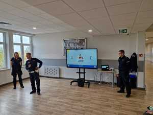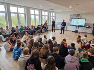 Dzieciom klas starszych, funkcjonariusze przypomnieli zasady bezpiecznego korzystania z hulajnóg elektrycznych. Policjanci zapoznali ich z najważniejszymi zasadami ruchu drogowego, które obowiązują użytkowników tych pojazdów, oraz omówili najczęstsze zagrożenia związane z ich niewłaściwym użytkowaniem. Zwrócili również uwagę na konieczność noszenia kasku i stosowania się do przepisów dotyczących prędkości oraz poruszania się po właściwych strefach drogi.