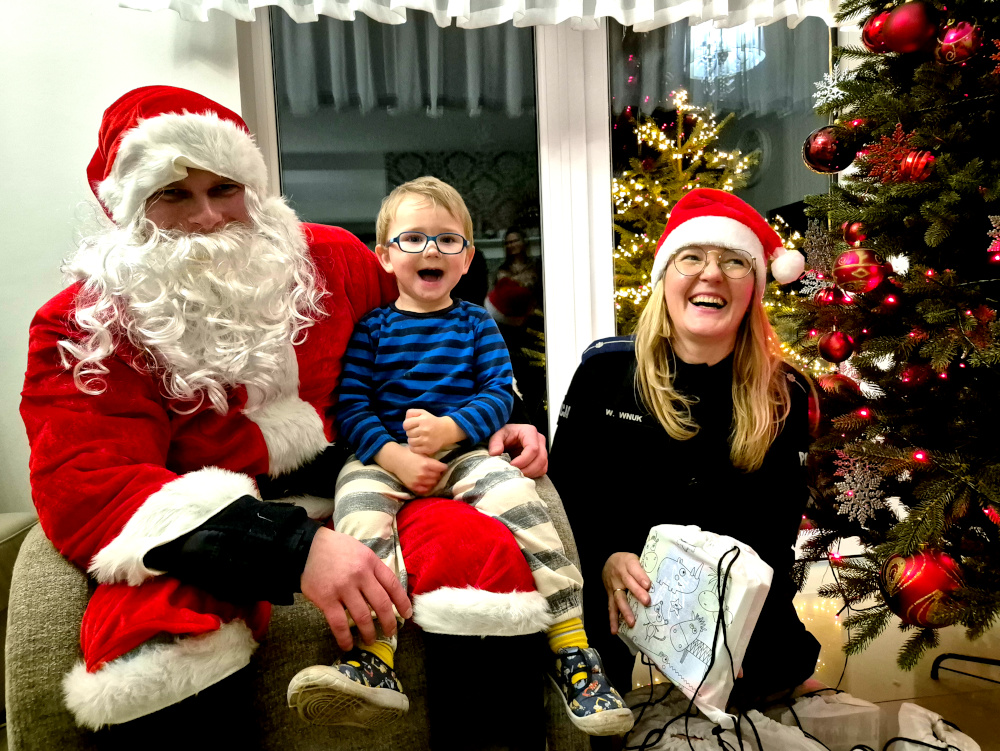 Te odwiedziny były zaskoczeniem. Otwoccy policjanci oprócz paczek przygotowanych w ramach corocznej zbiórki, przynieśli dzieciom coś znacznie cenniejszego – czas, uwagę i wiele radości. W rolę Świętego Mikołaja wcielił się jeden z otwockich funkcjonariuszy, a towarzyszyły mu trzy Elfy - policjantki i policjant. Najmłodsi z radością przyjmowali przygotowane dla nich upominki. Przytulali się okazując swoją szczerość, zaufanie i radość z odwiedzin. Były też wspólne tańce w rytm świątecznych piosenek oraz śpiewanie kolęd, które to wywołały dużo śmiechu i wzruszeń.