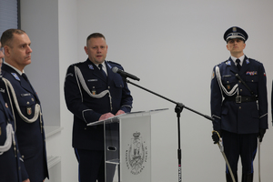 Następnie odczytano również rozkazy o powołaniu na stanowisko I Zastępcy Komendanta Powiatowego ds. prewencji podinspektora Jakuba Komorowskiego oraz Zastępcy Komendanta Powiatowego ds. kryminalnych młodszego inspektora Rafała Pałdynę.