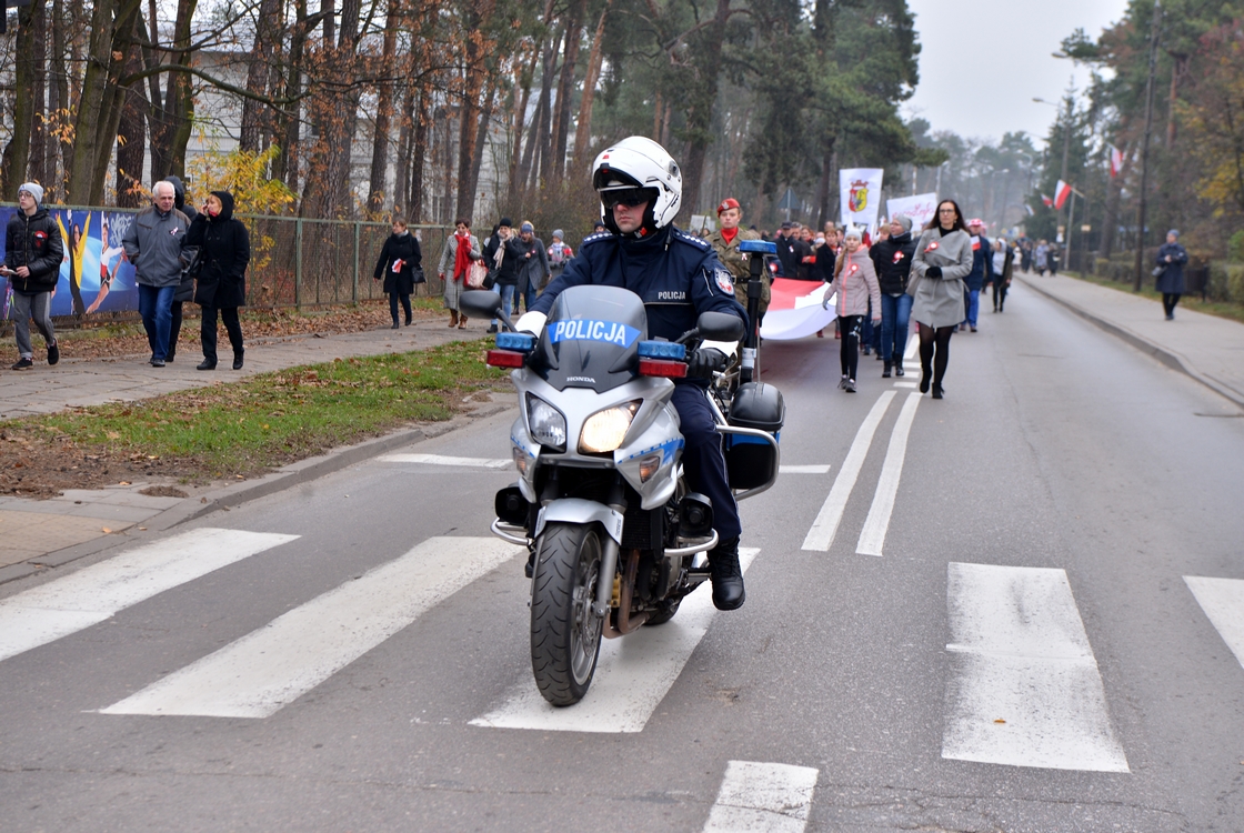 Policjanci z otwockiej drogówki prowadzili między innymi patriotyczny marsz, który dotarł do Powiatowego Młodzieżowego Domu Kultury, gdzie zorganizowano dla mieszkańców piknik patriotyczny.