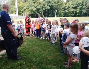 Spotkanie z przedstawicielami służb było bardzo mile przejęte przez małych słuchaczy, którzy z zaciekawieniem oglądali pokaz udzielania pierwszej pomocy i w skupieniu wysłuchali całej policyjnej prelekcji.