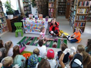 Takie spotkanie odbyło się w wiązowskiej bibliotece z okazji obchodów Światowego Dnia Pierwszej Pomocy. Wzięli w nim udział uczniowie z miejscowej szkoły podstawowej, uczęszczający do zerówki.